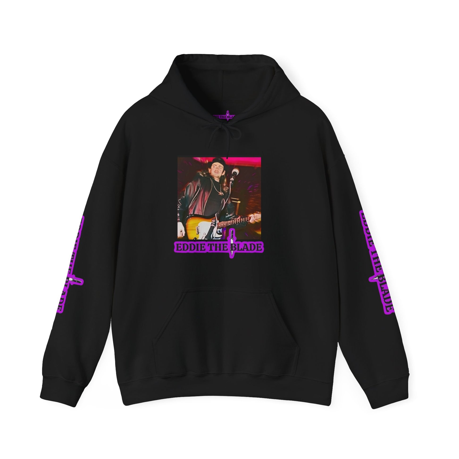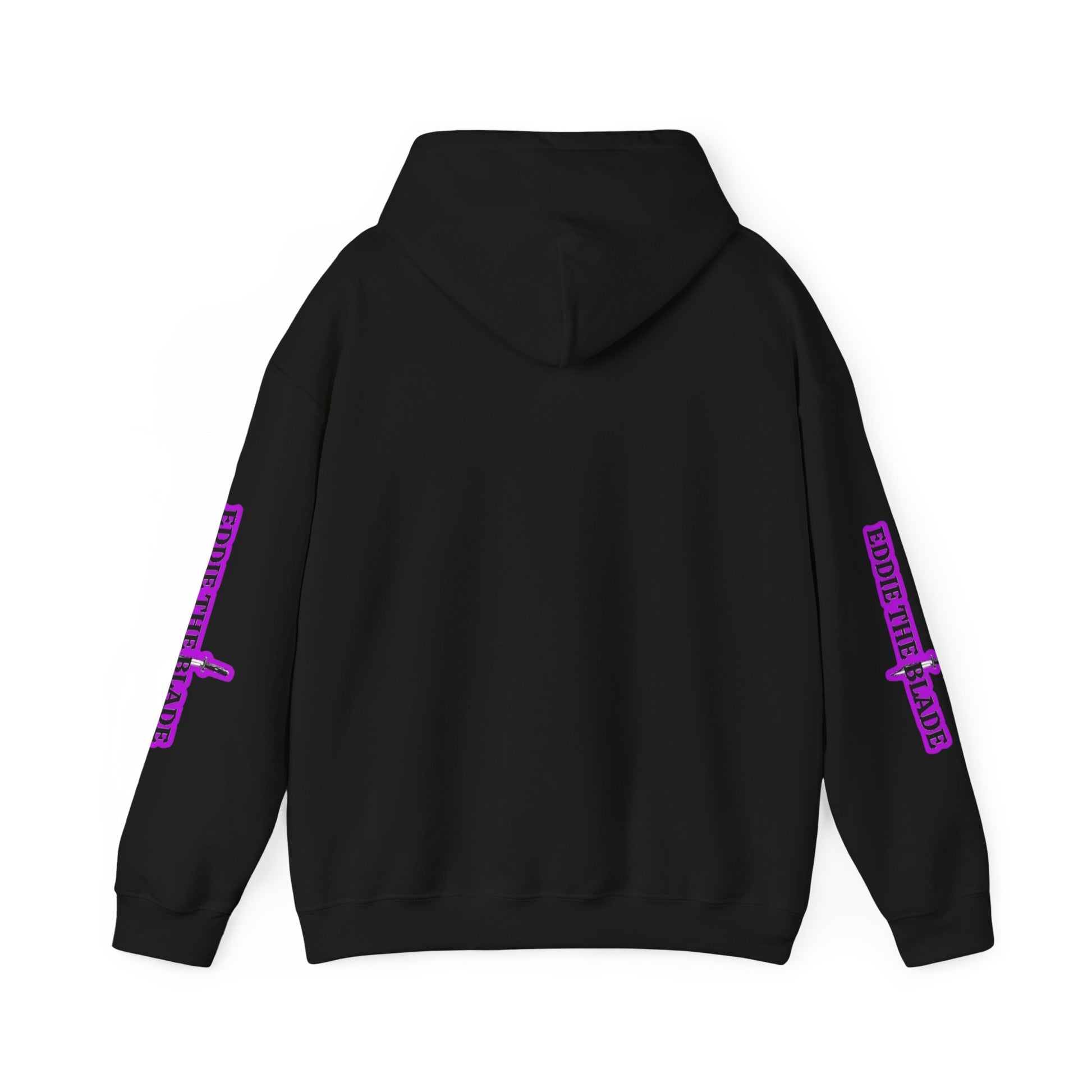 Introducing the Eddie the blade black hoodie, featuring a bold and vibrant purple logo. Made with high-quality materials and a comfortable fit, this hoodie is perfect for showing off your love for Eddie the blade. Stand out from the crowd and add this stylish piece to your wardrobe.This unisex heavy blend hooded sweatshirt is relaxation itself. Made with a thick blend of cotton and polyester, it feels plush, soft and warm, a perfect choice for any cold day. In the front, the spacious kangaroo pocket adds daily practicality while the hood's drawstring is the same color as the base sweater for extra style points.
