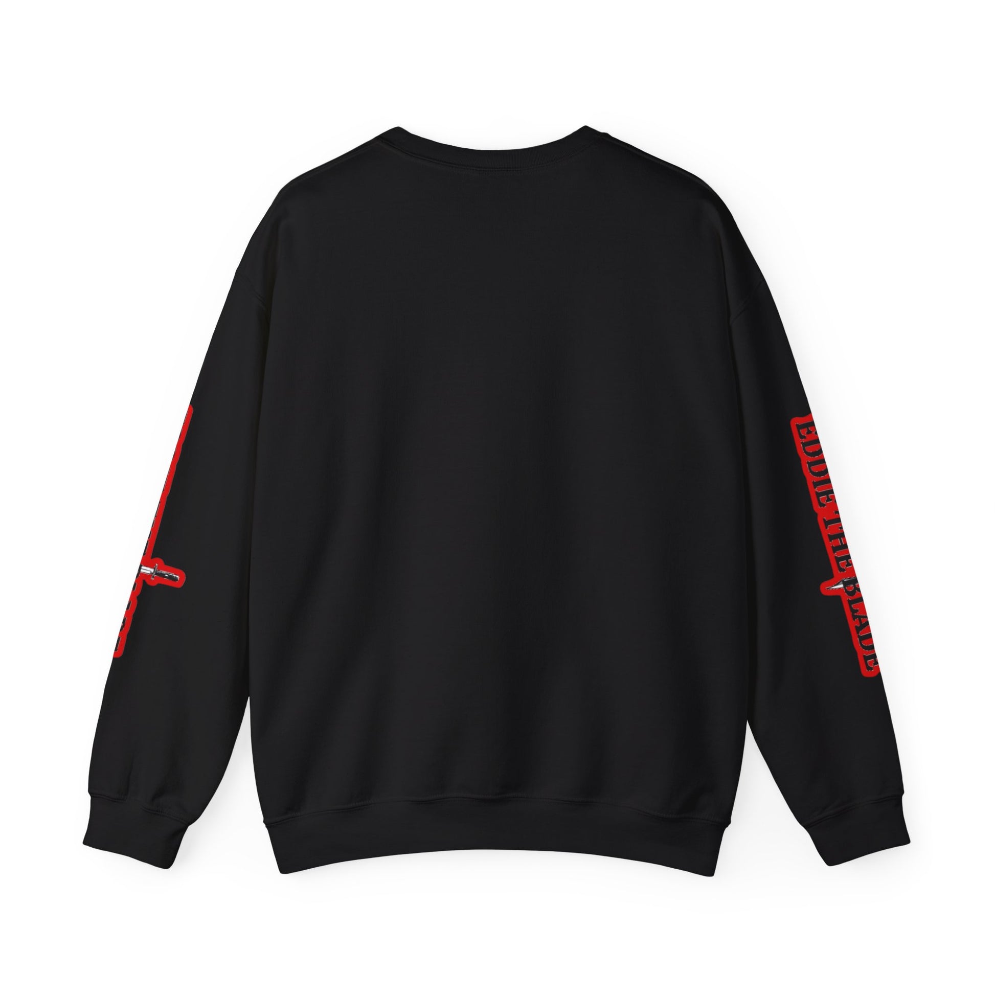 Introducing the Eddie the Blade Black Sweatshirt, featuring a striking red logo and high-quality photo design. Made with durable materials, this sweatshirt is both stylish and comfortable. Perfect for fans of the iconic Eddie the Blade brand.Ideal for any situation, a unisex heavy blend crewneck sweatshirt is pure comfort. These garments are made from polyester and cotton. This combination helps designs come out looking fresh and beautiful. The collar is ribbed knit, so it retains its shape even after washing. There are no itchy side seams on these sweaters.