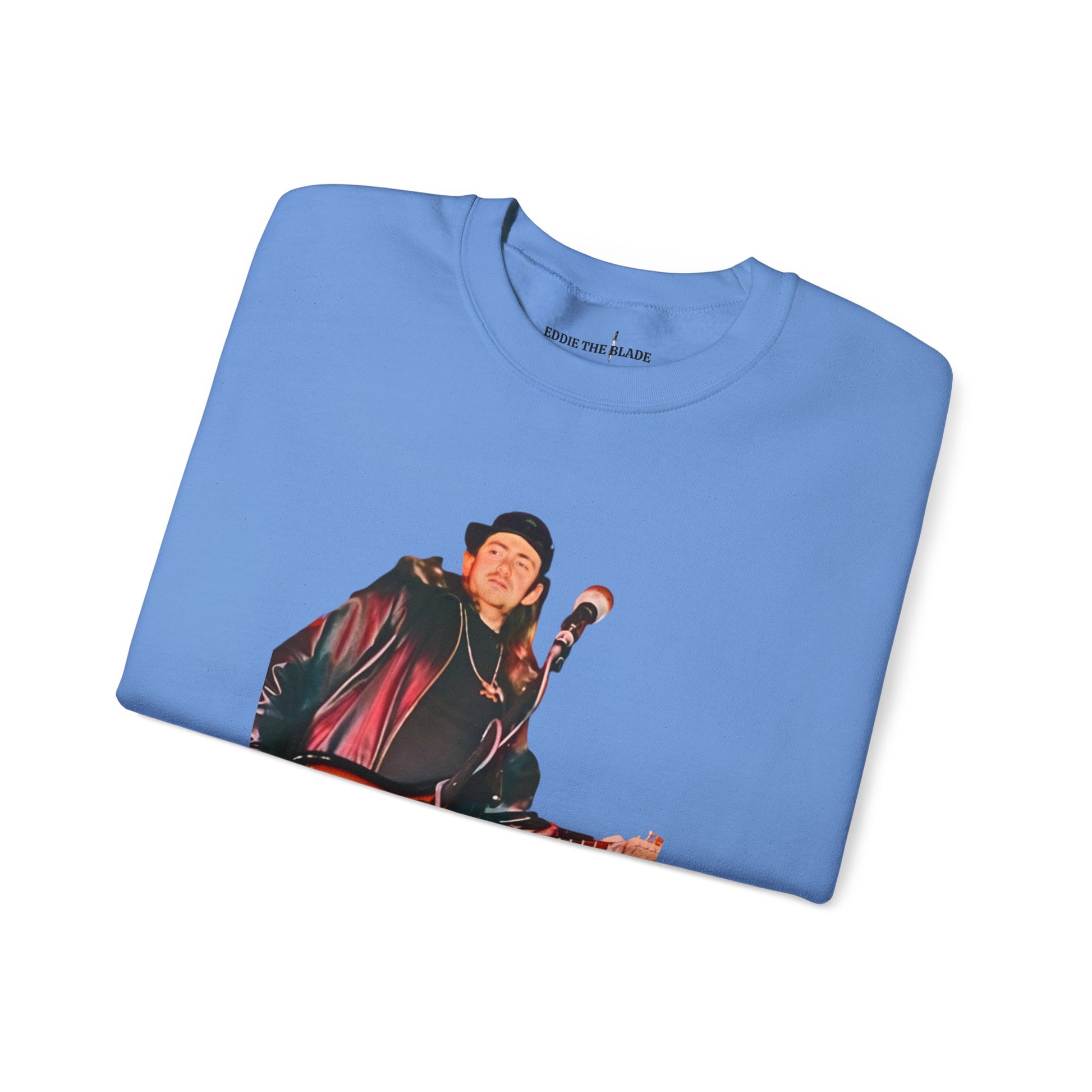 Introducing the Eddie the Blade Blue Sweatshirt, a stylish and comfortable addition to your wardrobe. With its unique design, this sweatshirt boasts both fashion and function. Made with high-quality materials, it offers ultimate comfort and durability. Perfect for any occasion, stay warm and stylish with Eddie the Blade.Ideal for any situation, a unisex heavy blend crewneck sweatshirt is pure comfort. These garments are made from polyester and cotton. This combination helps designs come out looking fresh and beautiful. The collar is ribbed knit, so it retains its shape even after washing. There are no itchy side seams on these sweaters.