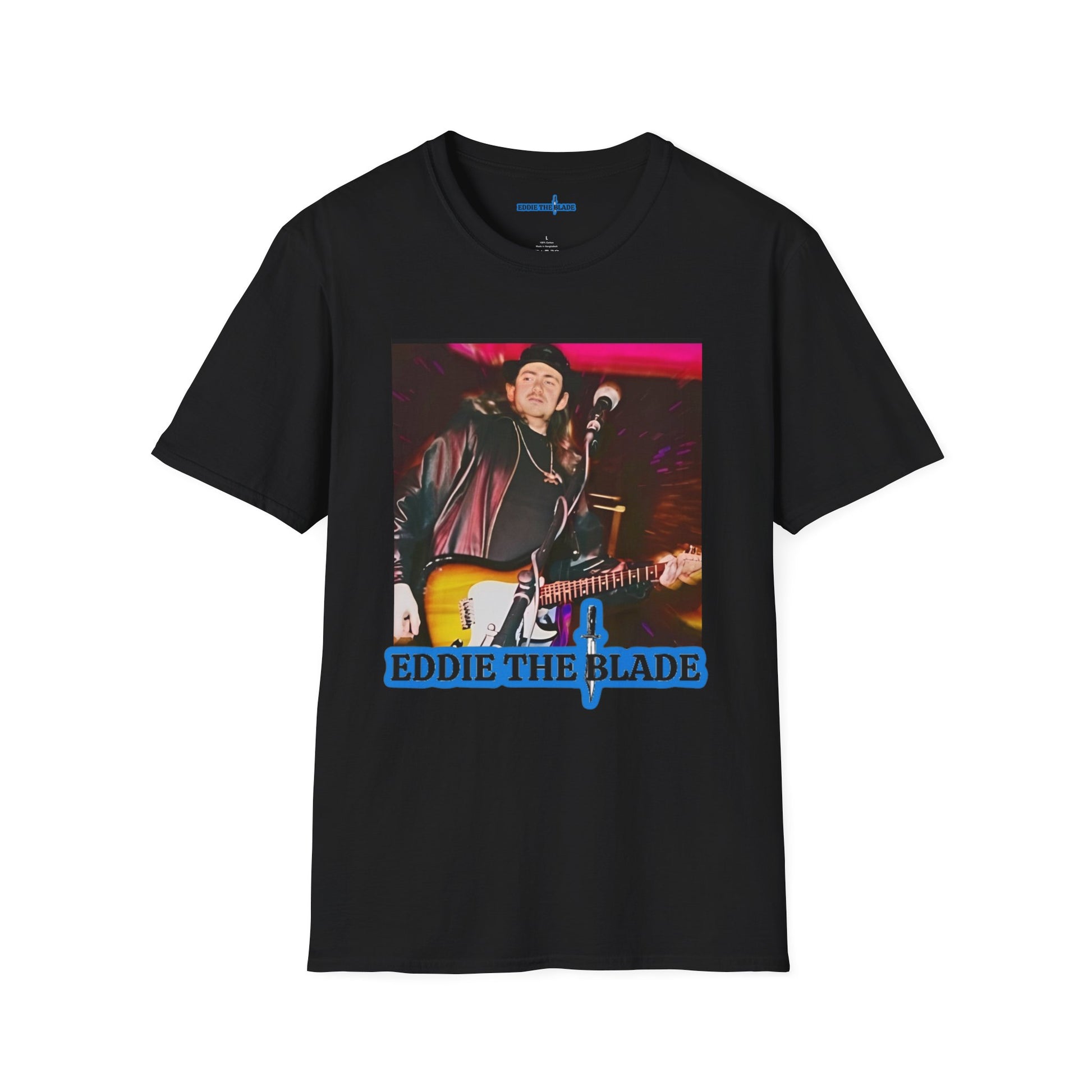 Introducing the Eddie the blade ladies T-Shirt in black, featuring a striking photo and bold blue logo. Made of high-quality materials, this shirt not only showcases your love for the brand but also provides comfort and durability. Stand out in style with Eddie the blade ladies T-Shirt.The Gildan Softstyle® 64000 redefines casual comfort with a modern unisex cut and ultra-soft materials. Solid colors are 100% cotton, while heathers and sport grey use polyester blends for added durability. Shoulders are reinforced with twill tape, there are no side seams for a smoother fit, and the ribbed-knit collar helps prevent curling. Whether for printing or everyday wear, the Gildan 64000 stands out as a dependable wardrobe staple.